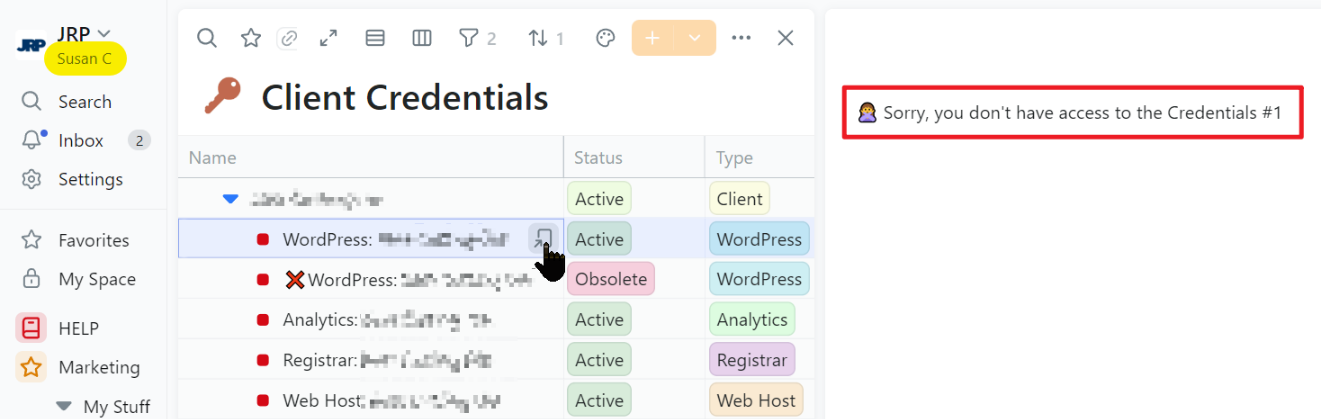 It does look a bit strange, since if it were really true that Susan C had no access to Credentials #1 then I would not expect it to be visible in the grid view.