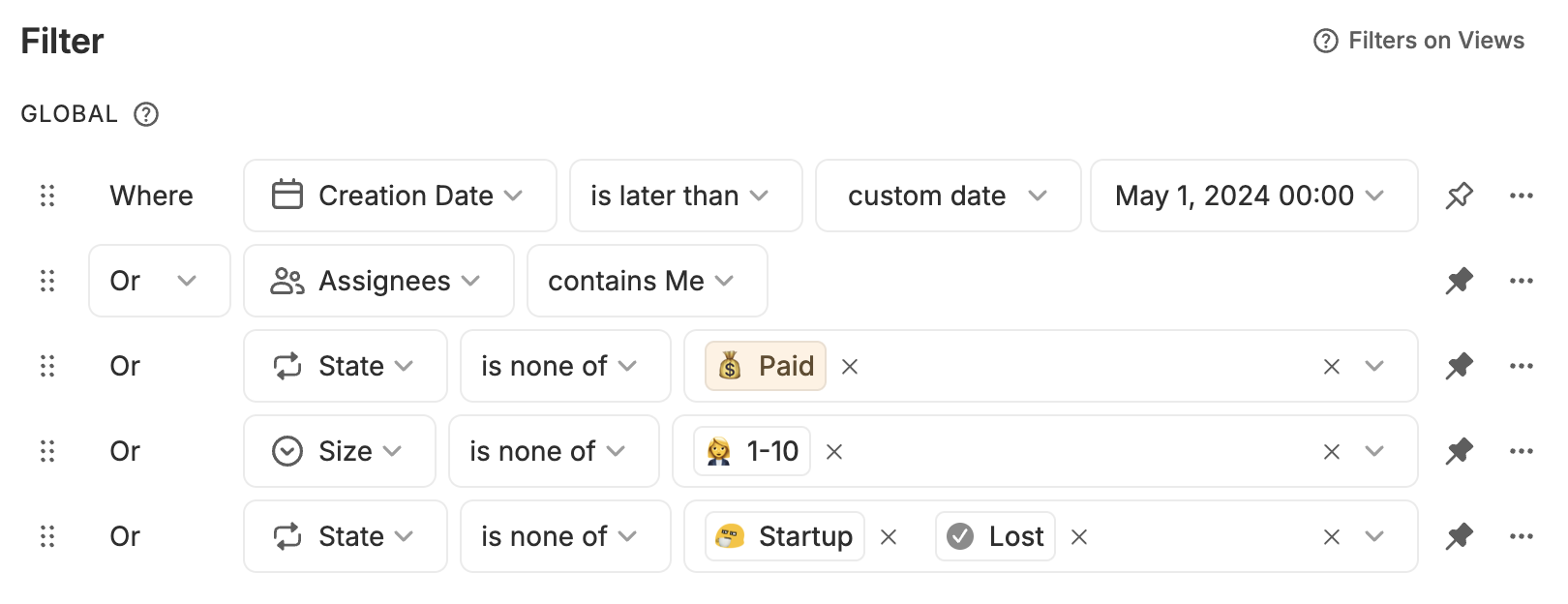 unpin all Pinned filters that have OR condition in the filter setup next week. For example, if you have pinned filters like these, all of them will be unpinned, since they are united via OR: