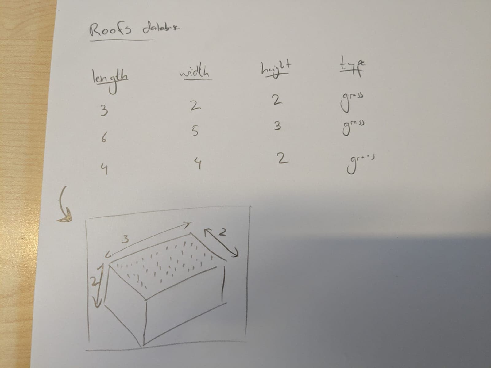So you may have a record where you specify a roof name/type, and add dimensions.