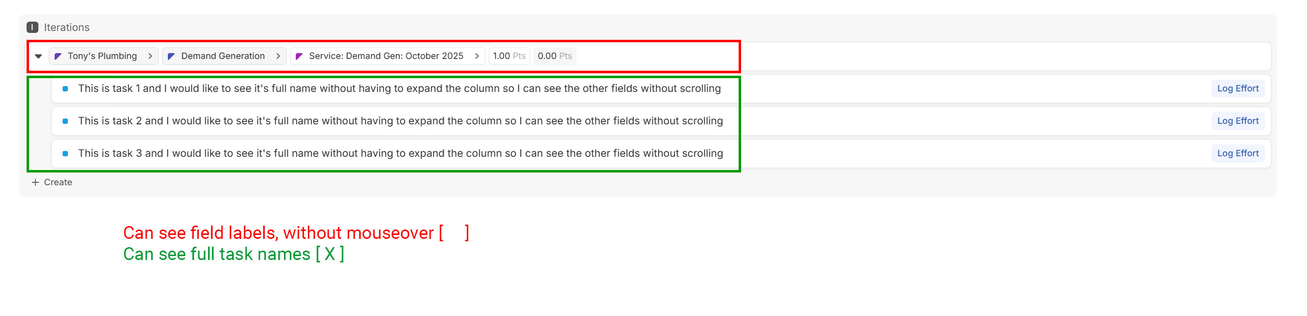 Maybe it’s unorthodox to use Board View without columns, but hey, if it can work, who cares? Board View already has the concept of “Card Size” which changes how field labels are displayed! Unfortunately, it only applies to the cards, and not the rows…