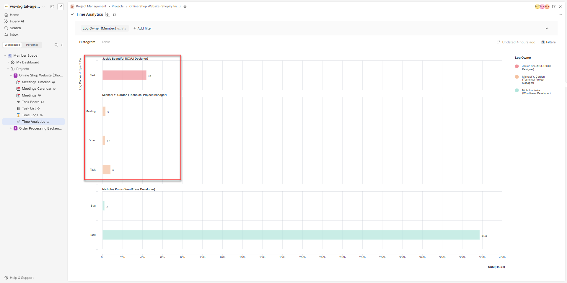 Case: What you see on the screenshot it a sort of contractor space where a contract can see their tasks, report time spent. But there are no filters in reports allowing to limit stats per this contractor only… I can filter manually only. I want chart to show data for Nicholos only automatically.