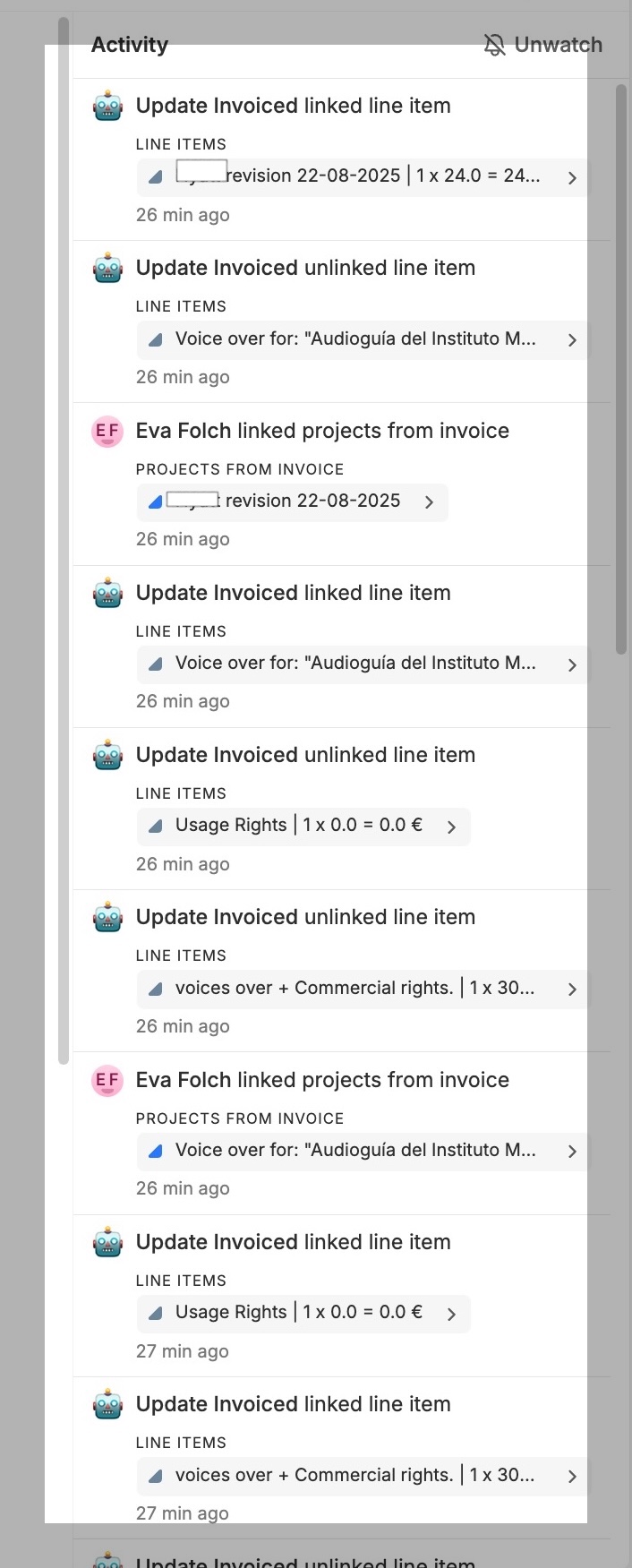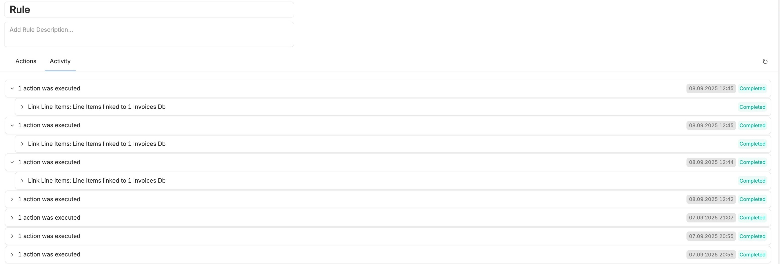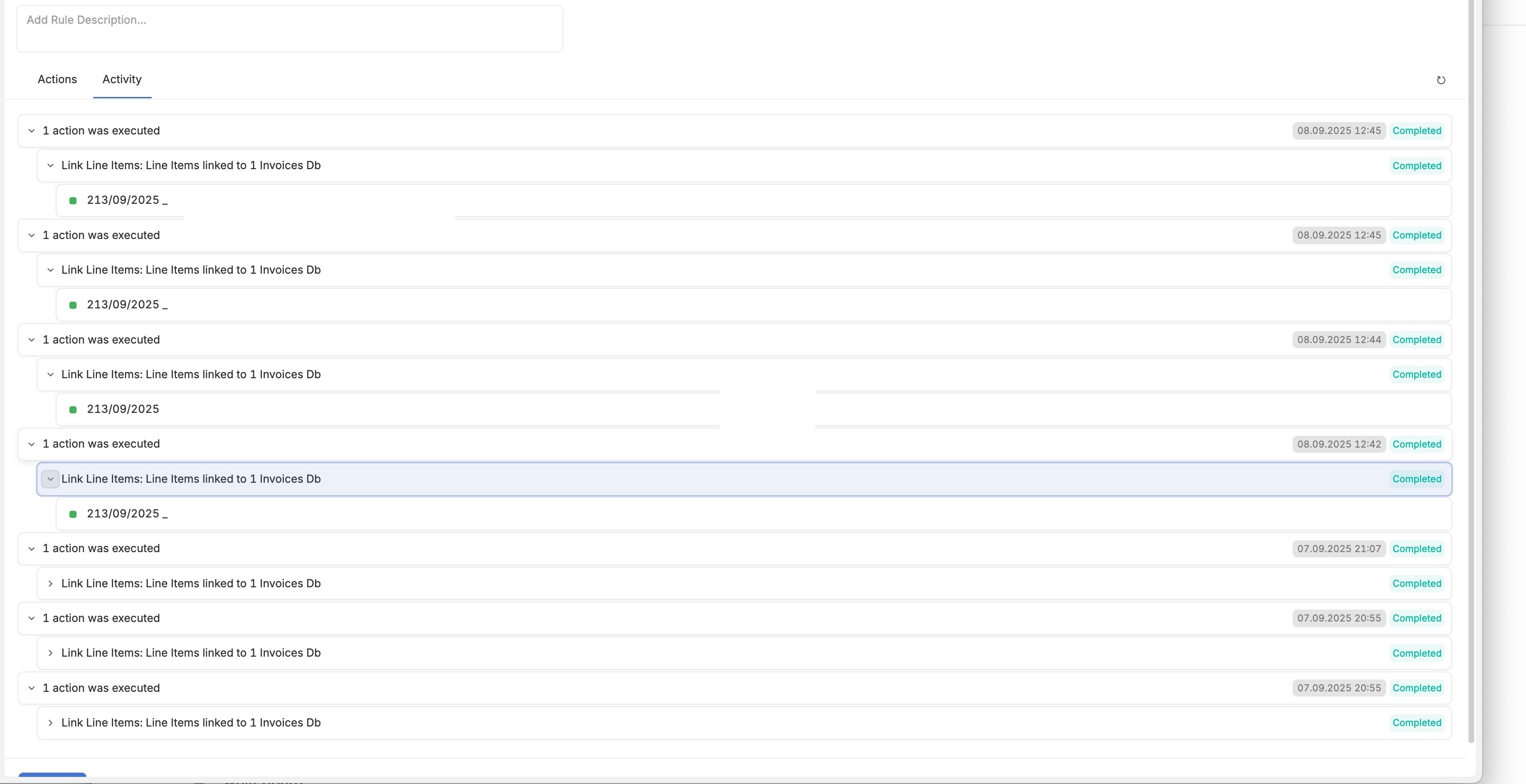 You mean the log from the rule? It says it works, but it just unlinks the last line item. If I do it manually, without a rule, just adding the Invoice relation to the line items it works, but I don’t manage with the rule.