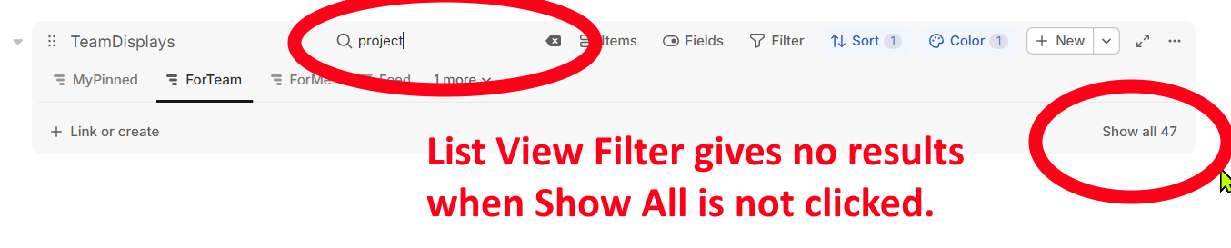 In a list view, when you use search, you assume it searches all items in the collection. But it currently does not, when you do not first click Show all xx.