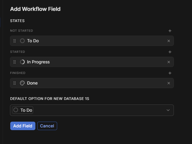 and what I see in my Fibery when I add a workflow field.